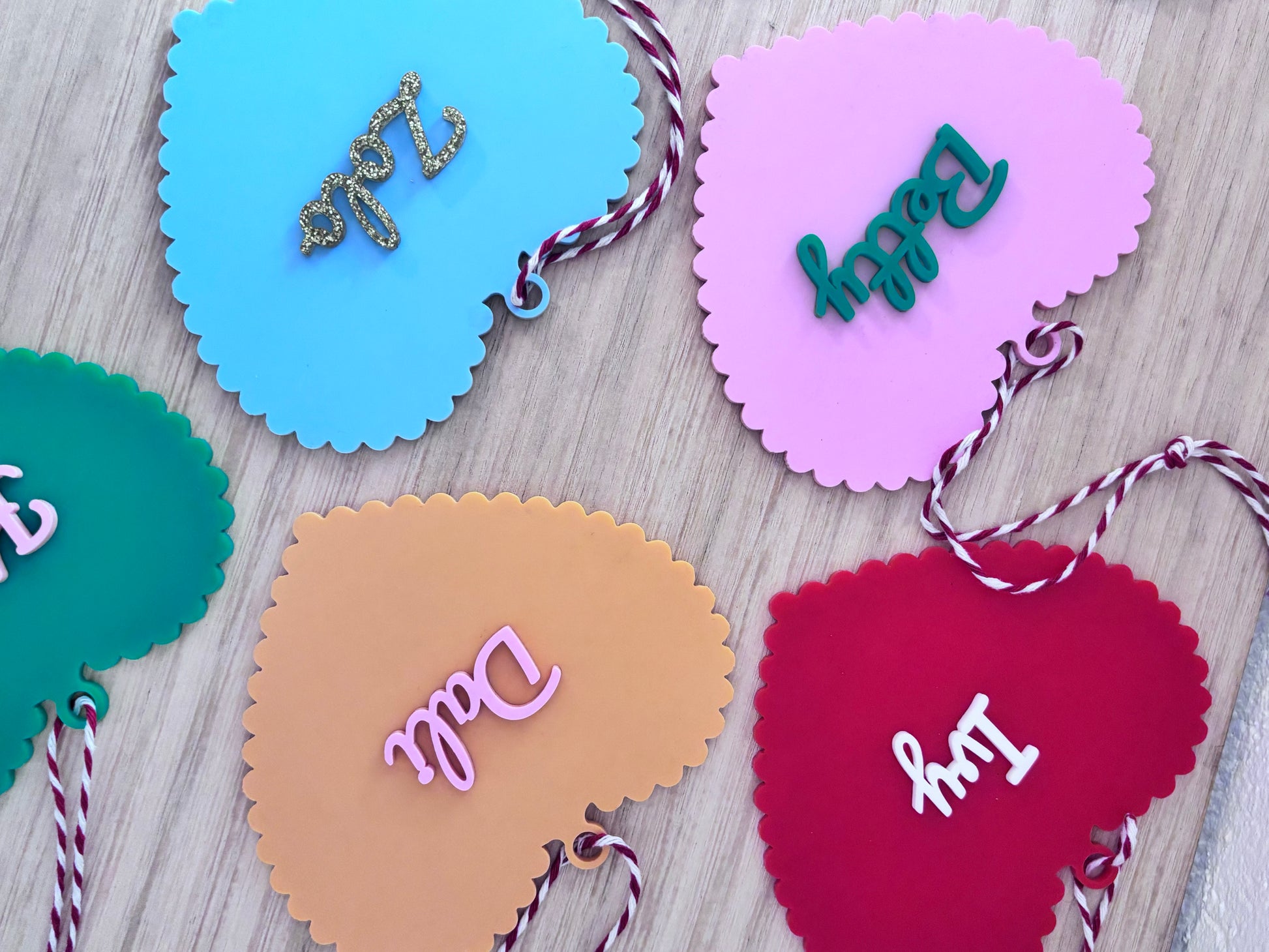 - Please note that depending on name length will determine the size of the writing. If ordering as a set we will do our best to keep letters the same sizing.