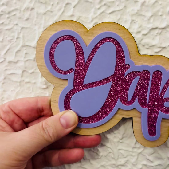 This sign is made from 3mm layered wood and acrylic and is great for door or wall signage. The design is multi-colour with 2 layers with font as provided.
